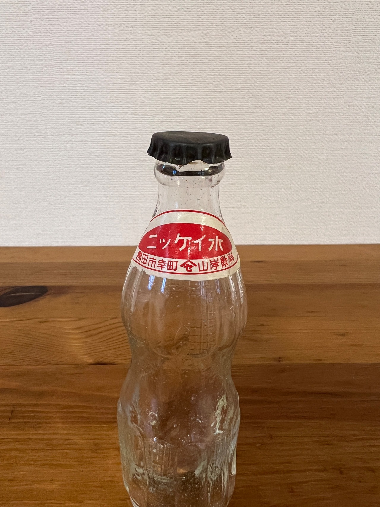 ニッキ水とは静岡県の山岸飲料の「ニッケイ水」のびん。戦前から昭和20年代中頃まで使われていたものです。サイズが小さくてとてもお洒落!